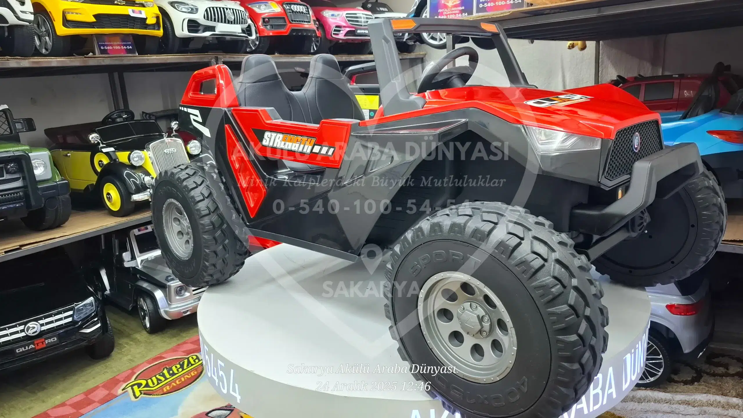 Bu devasa 24 Volt Clash Buggy modelini Akülü Araba Dünyası mağazamızda deneyimleyebilir; montajı yapılmış, tüm testleri tamamlanmış şekilde hemen teslim alabilirsiniz. Teknik servis ve yedek parça desteğimizle satış sonrasında da yanınızdayız.