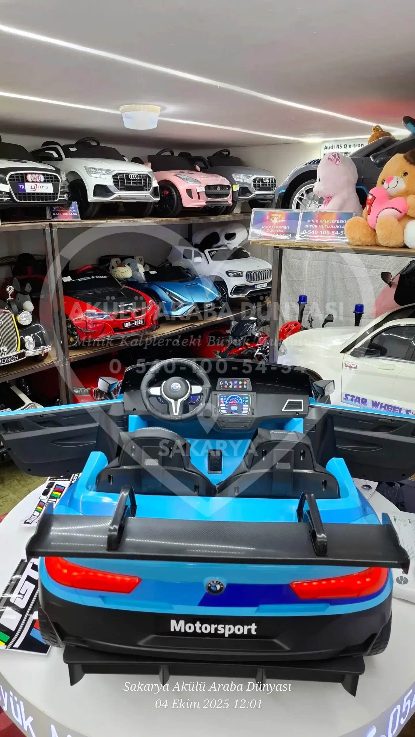 BMW M Sport GTE tarzı 24V güçlü, çift kişilik, kumandalı, LED’li ve deri koltuklu akülü araba. Sakarya Akülü Araba Dünyası’nda satışta!