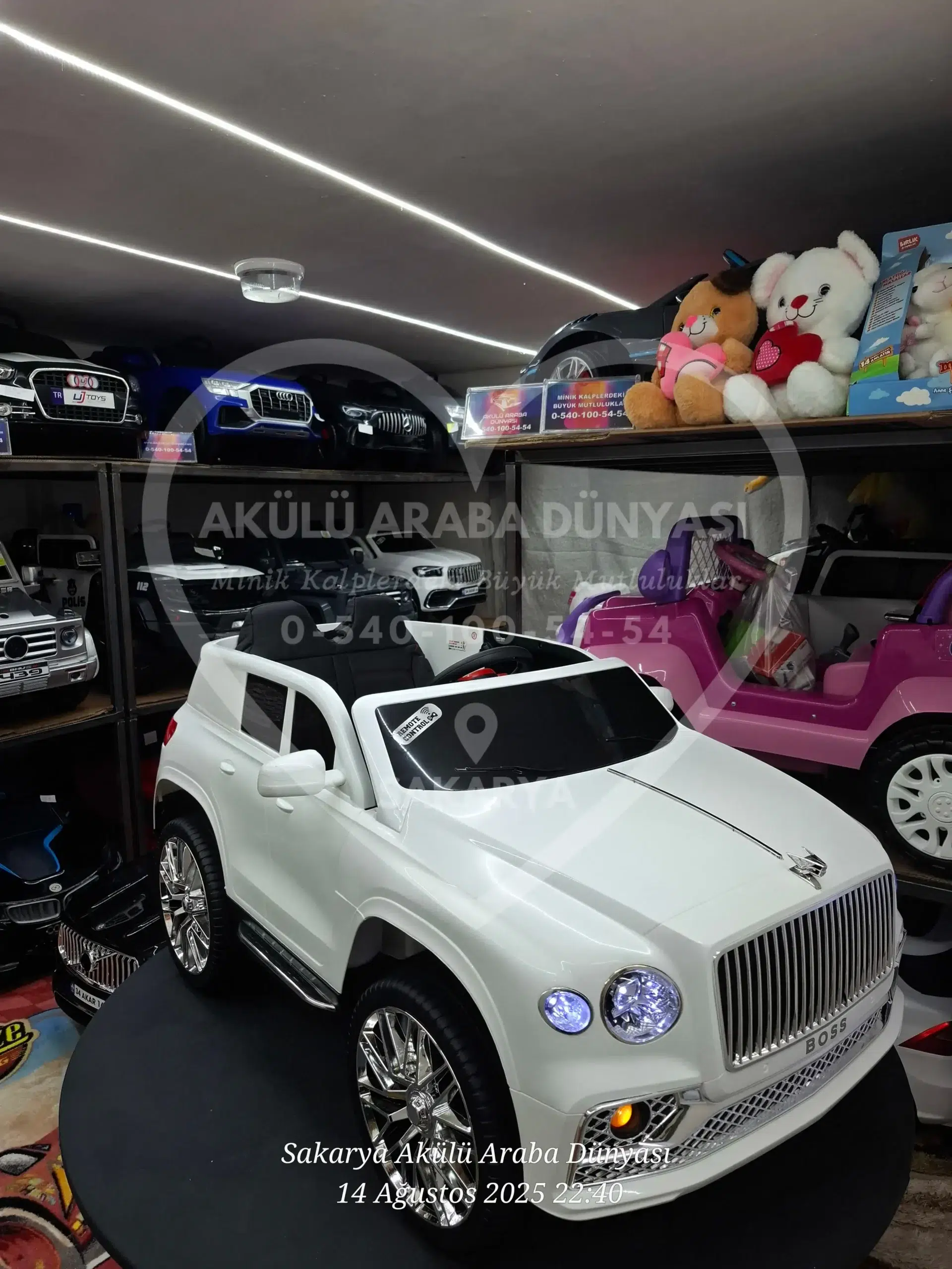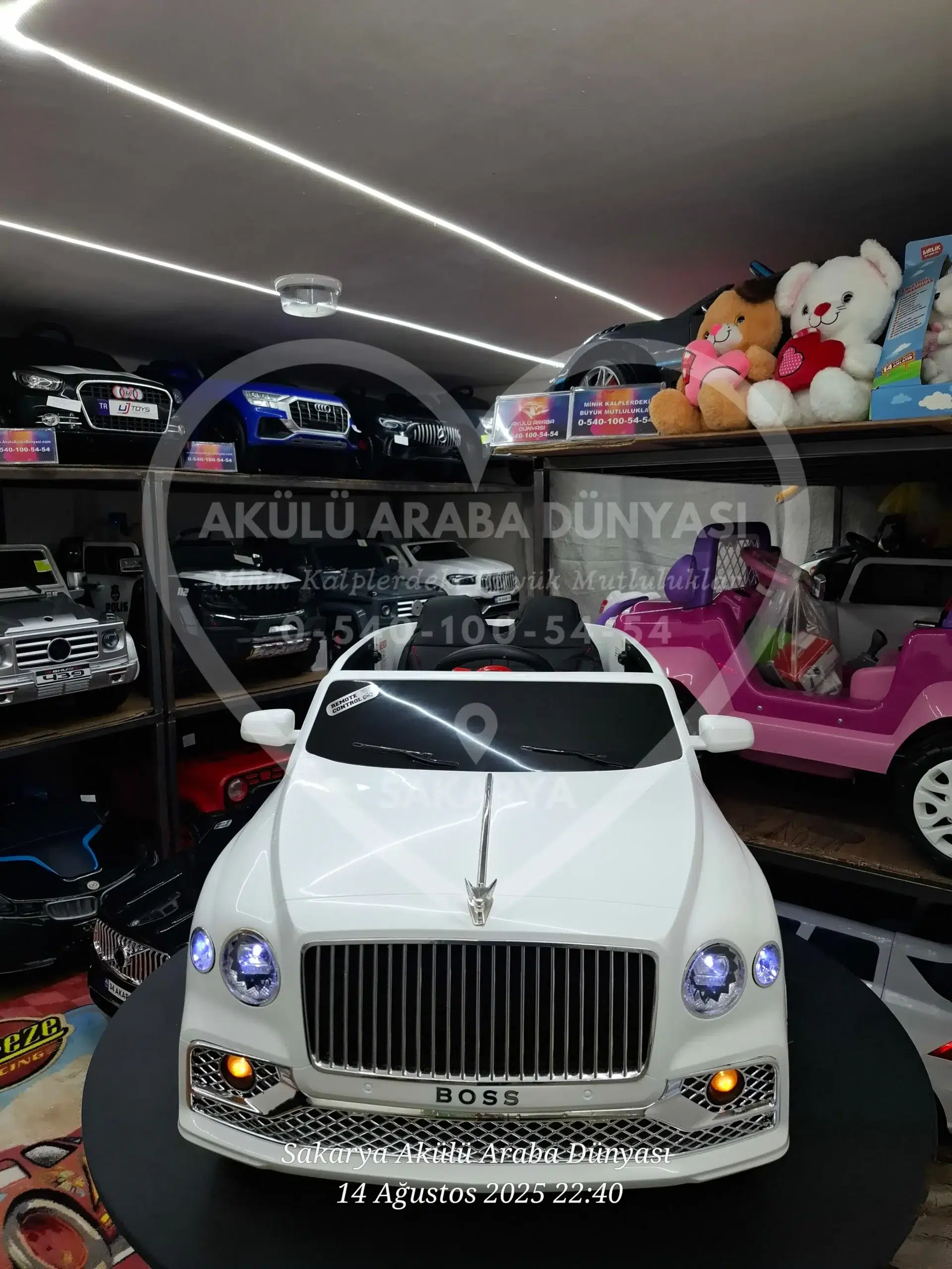 Parlak inci beyaz rengi ve Bentley benzeri lüks tasarımıyla öne çıkan 12 Volt uzaktan kumandalı Boss GT akülü araba, çift motorlu yapısı, konforlu deri koltuğu ve güvenli sürüş özellikleriyle çocuklar için şık ve keyifli bir sürüş deneyimi sunar.