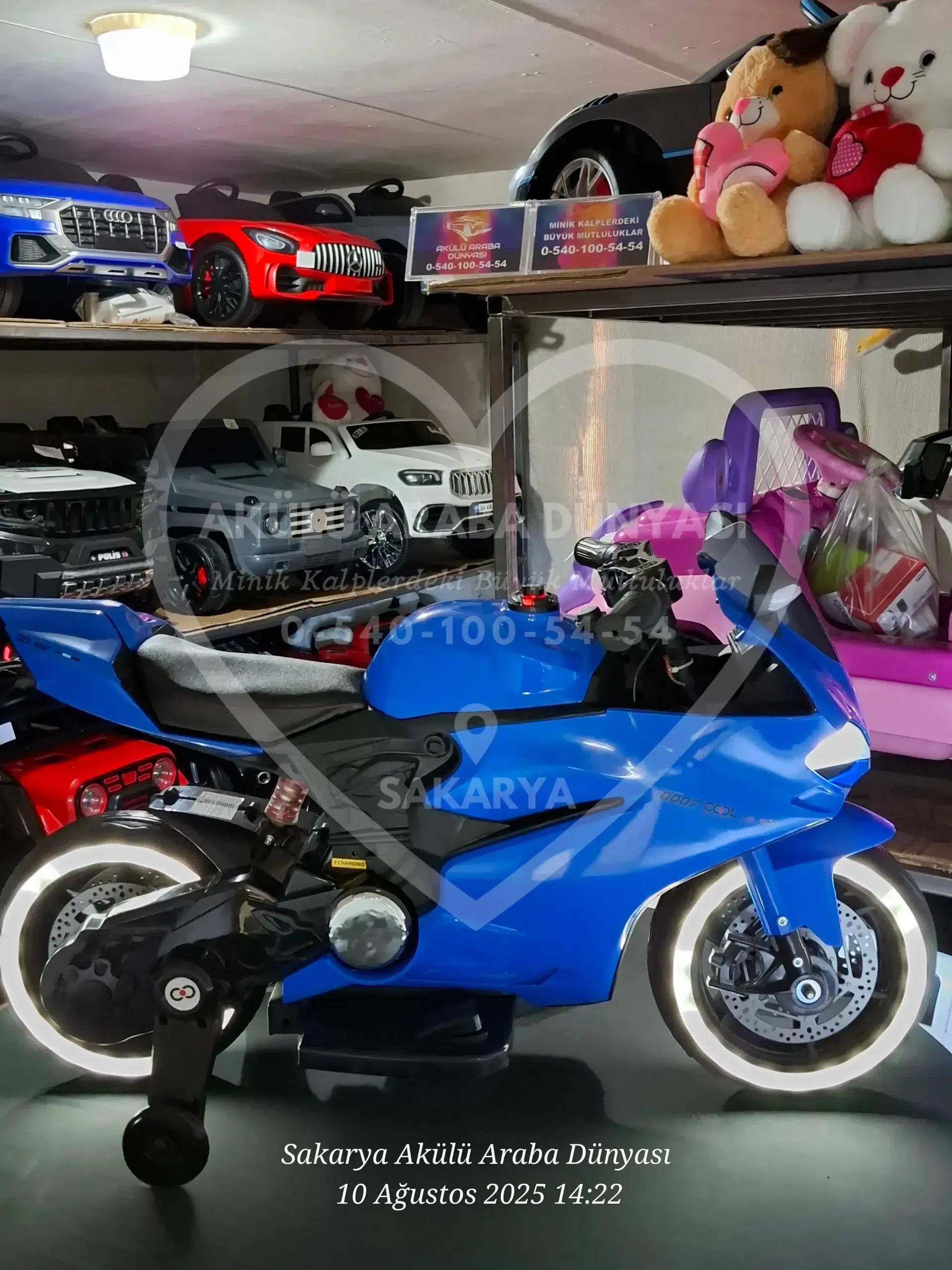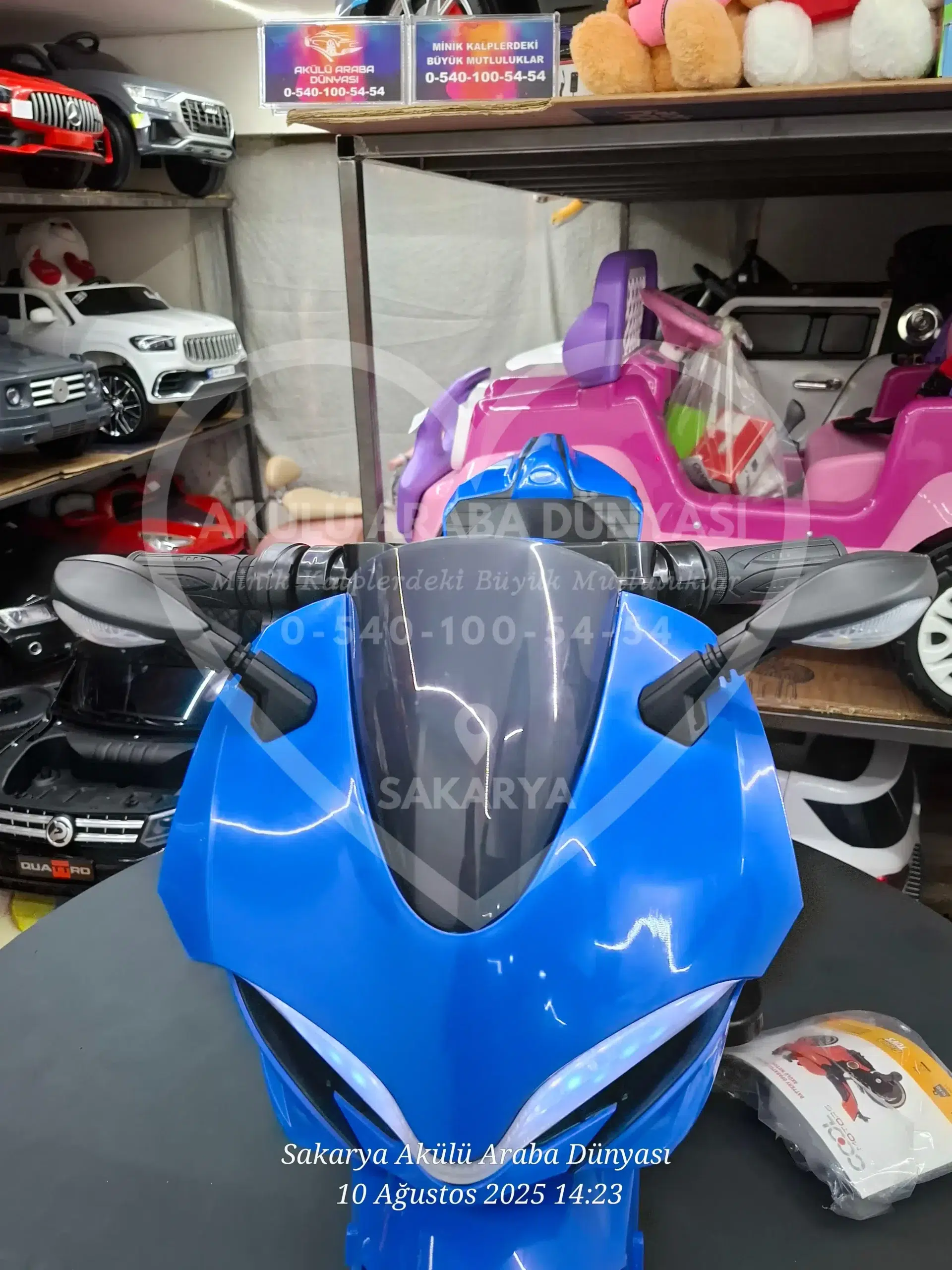 Akülü Yarış Motoru 12V Mavi – Elden Gaz Kontrollü, Çift Motorlu