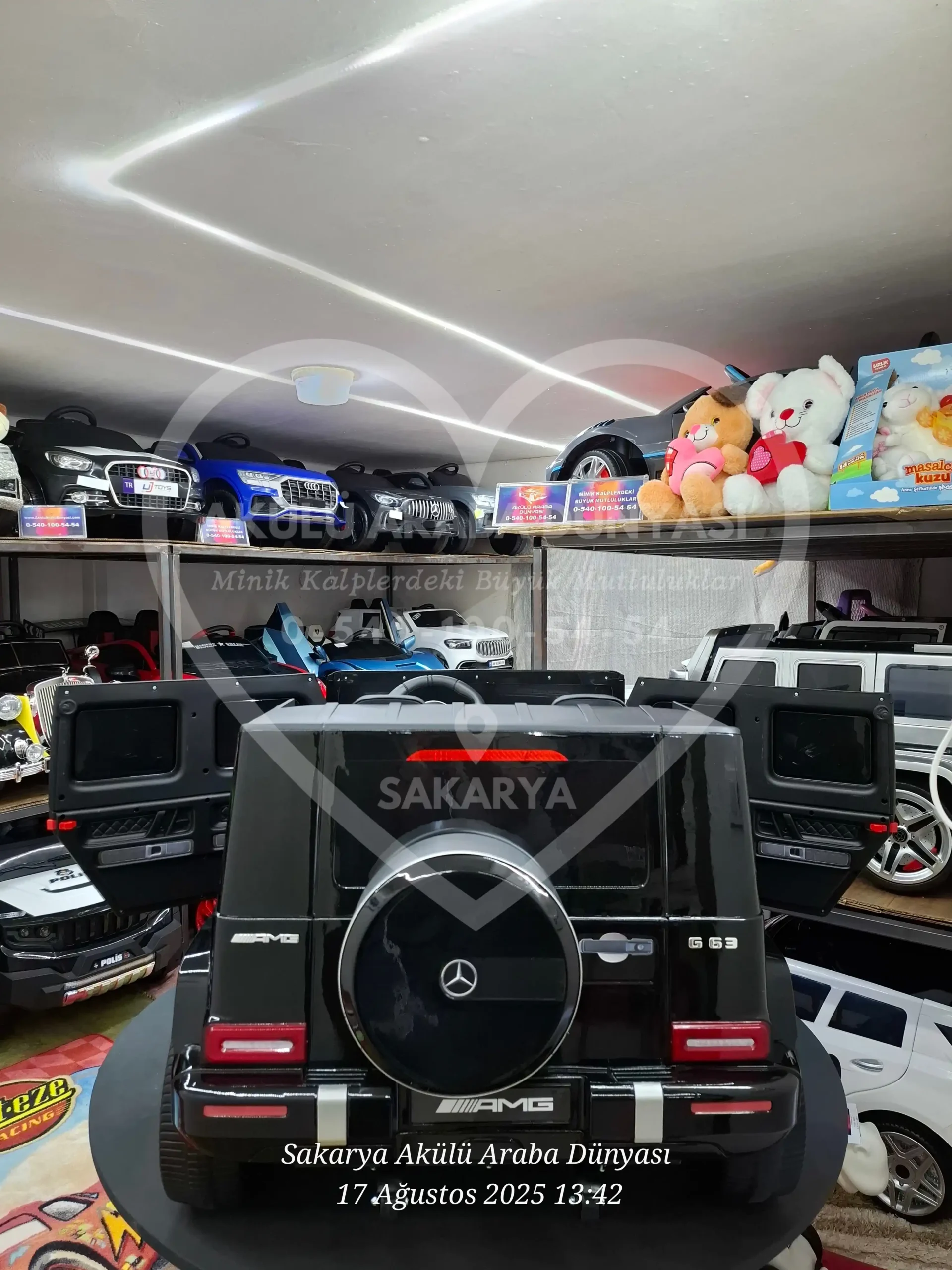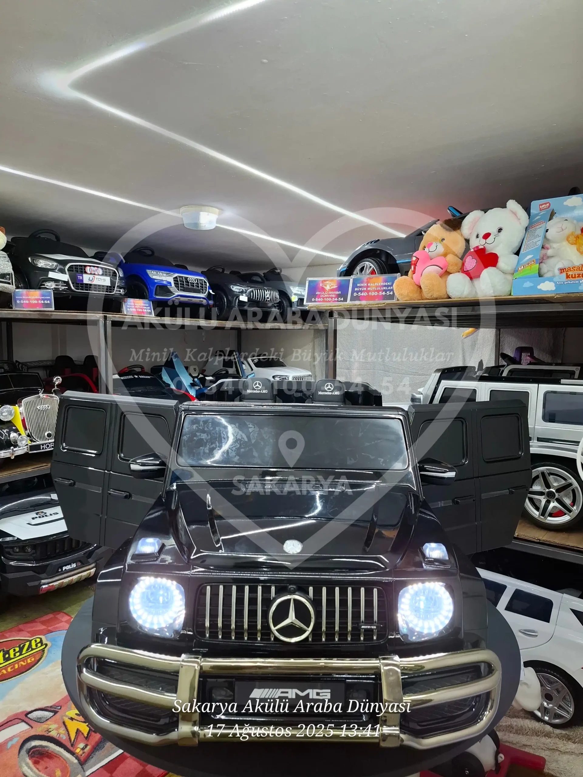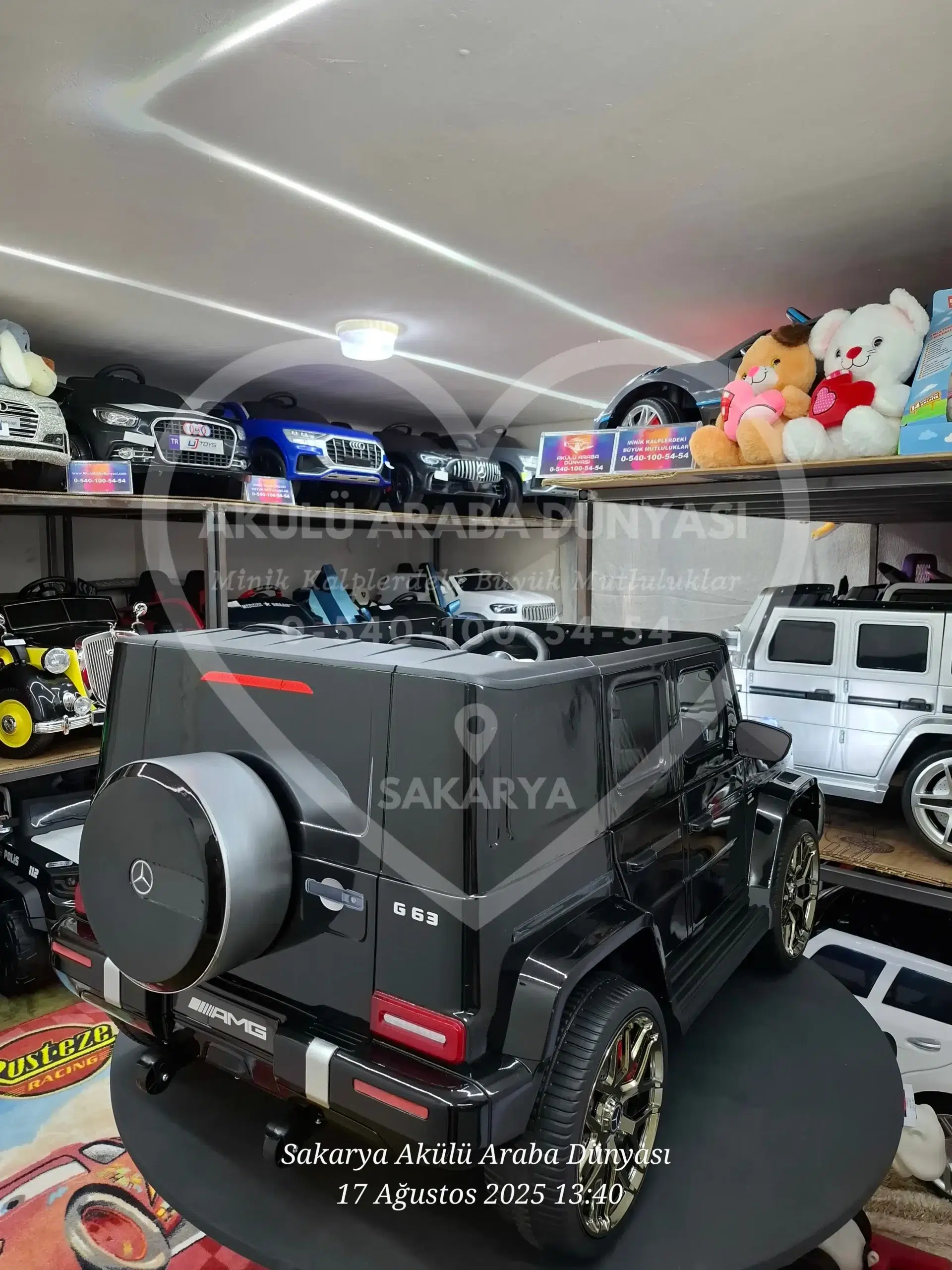 Mercedes-Benz G63 AMG 24V Metalik Siyah modelini Sakarya Akülü Araba Dünyası mağazamızda yakından inceleyebilir; montajı tamamlanmış ve kullanıma hazır şekilde hemen teslim alabilirsiniz. Sakarya’nın en büyük showroomunda hayallerinizdeki araca dokunarak sahip olun!