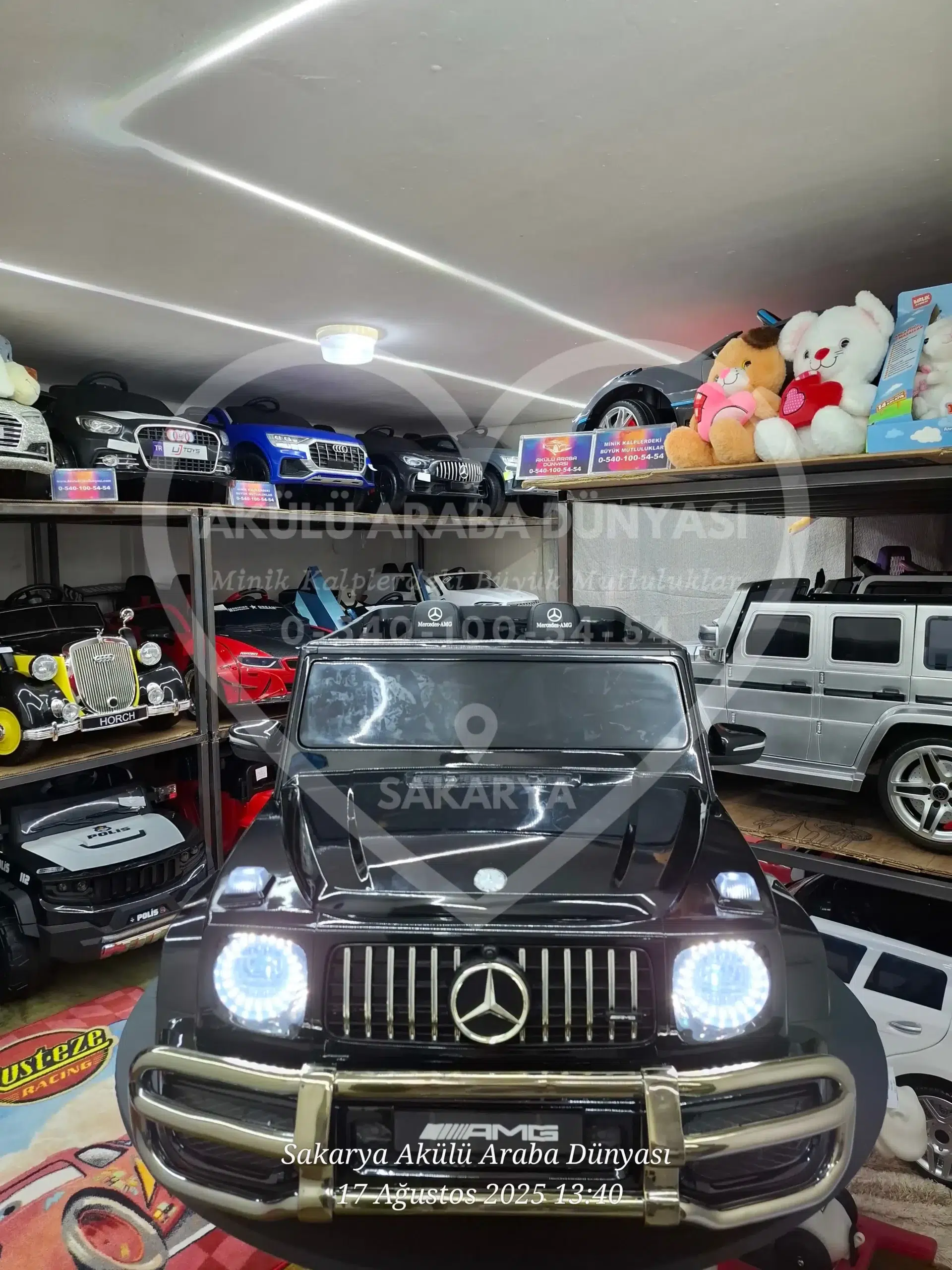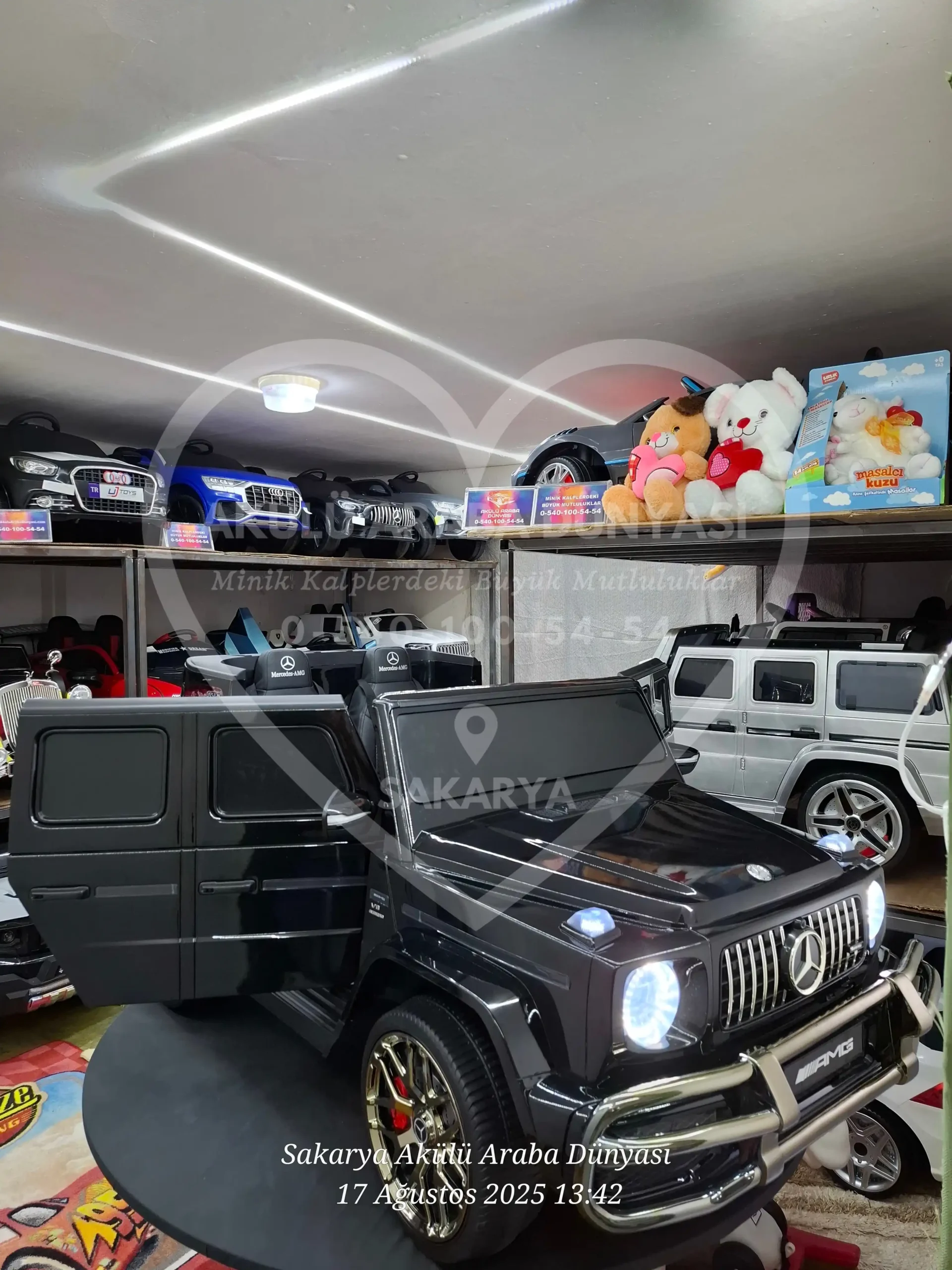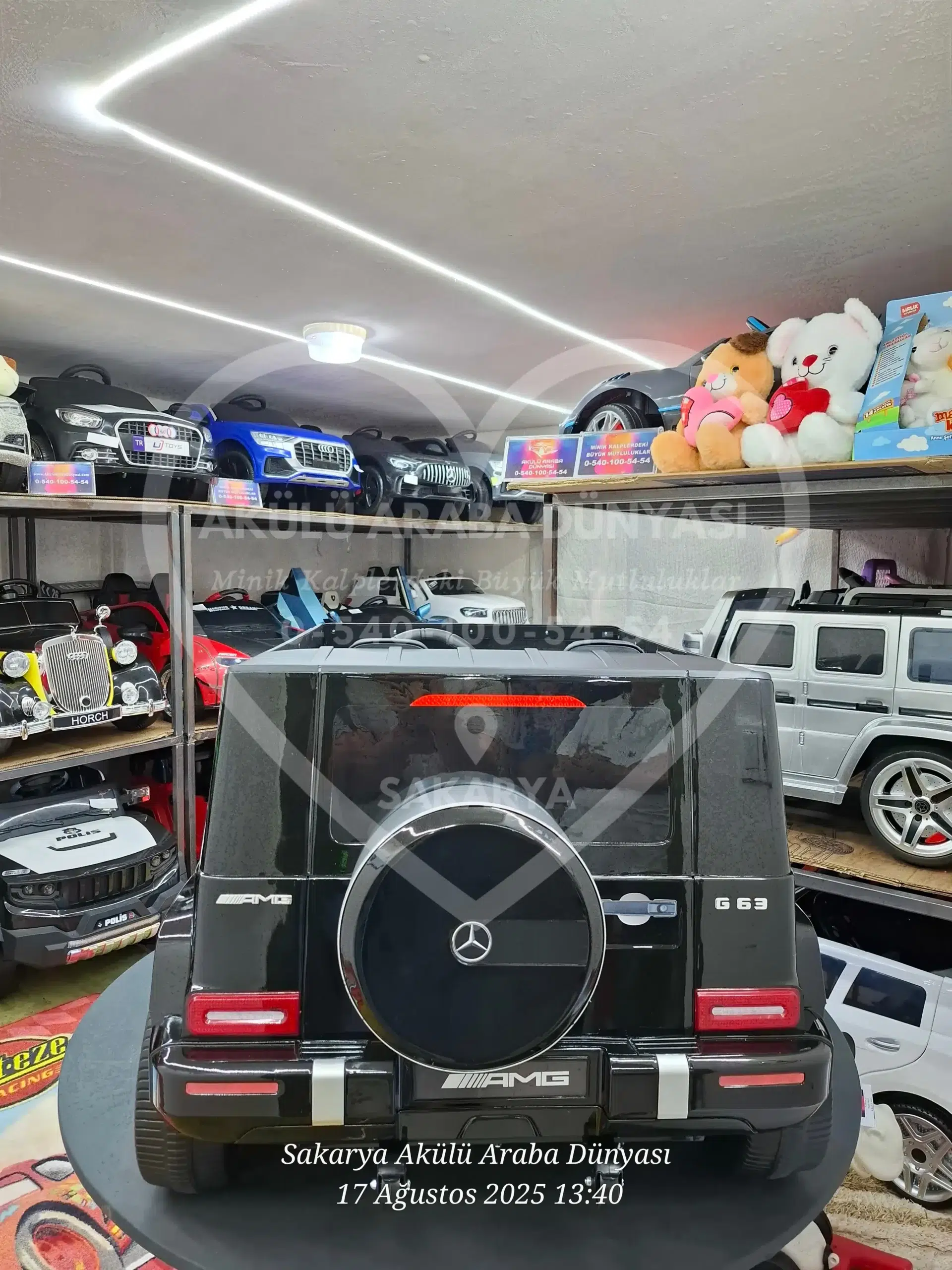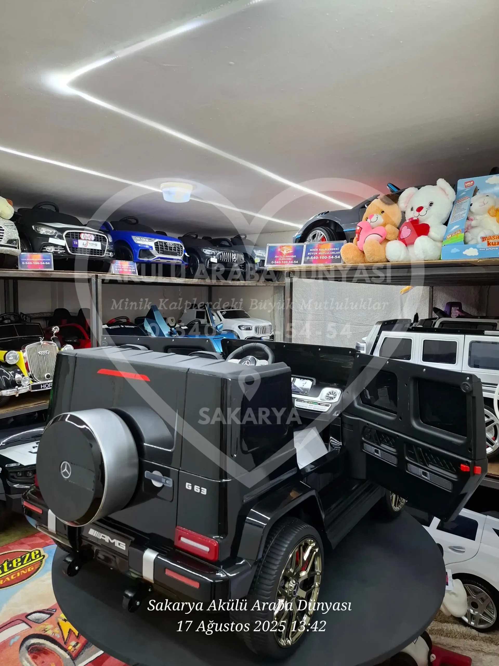 Mercedes-Benz G63 AMG 24V Metalik Siyah modelini Sakarya Akülü Araba Dünyası mağazamızda yakından inceleyebilir; montajı tamamlanmış ve kullanıma hazır şekilde hemen teslim alabilirsiniz. Sakarya’nın en büyük showroomunda hayallerinizdeki araca dokunarak sahip olun!