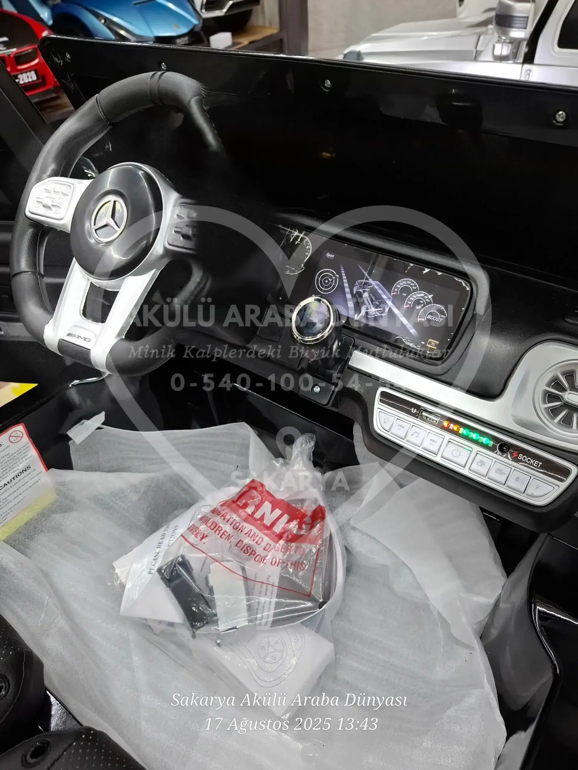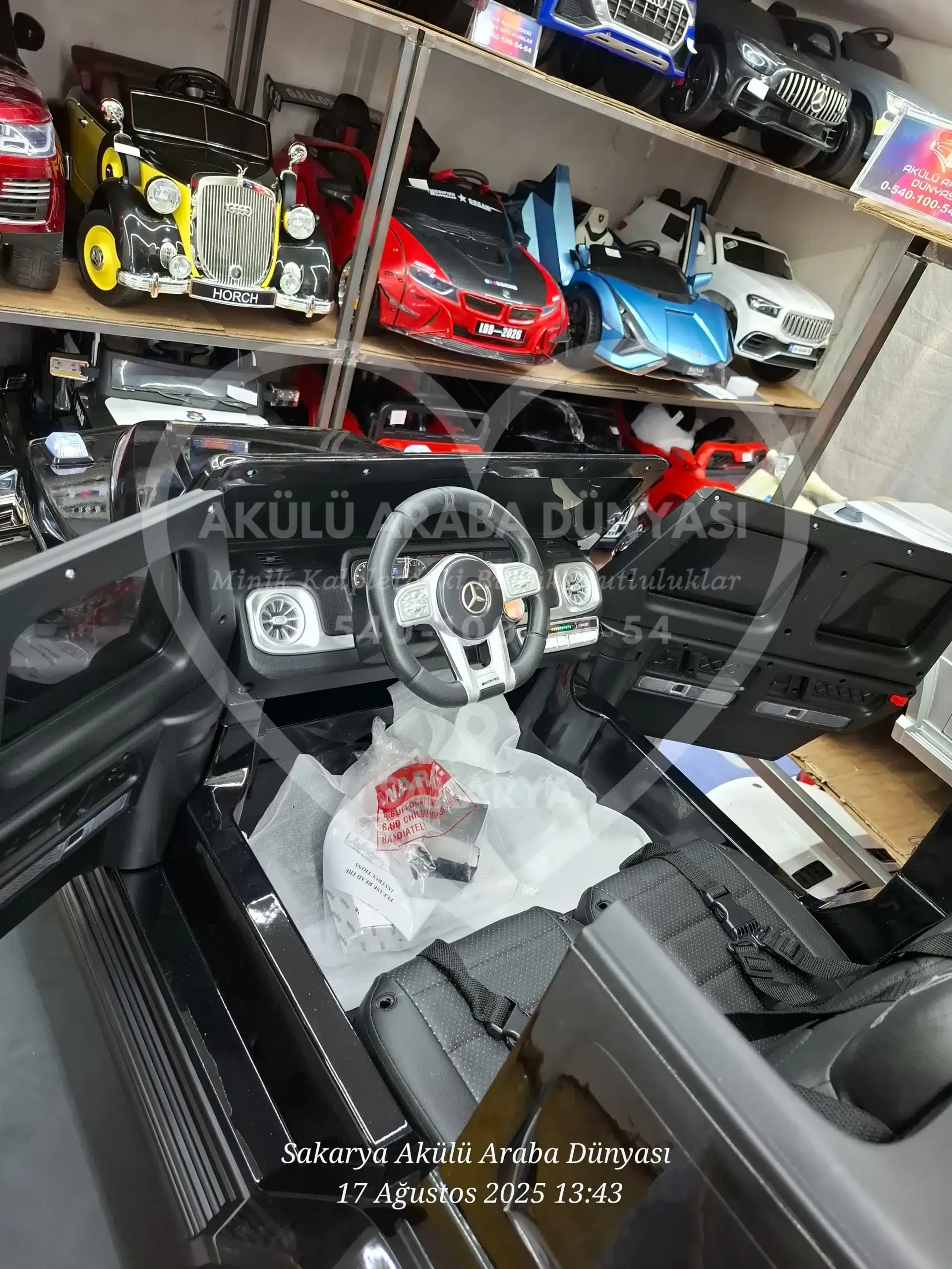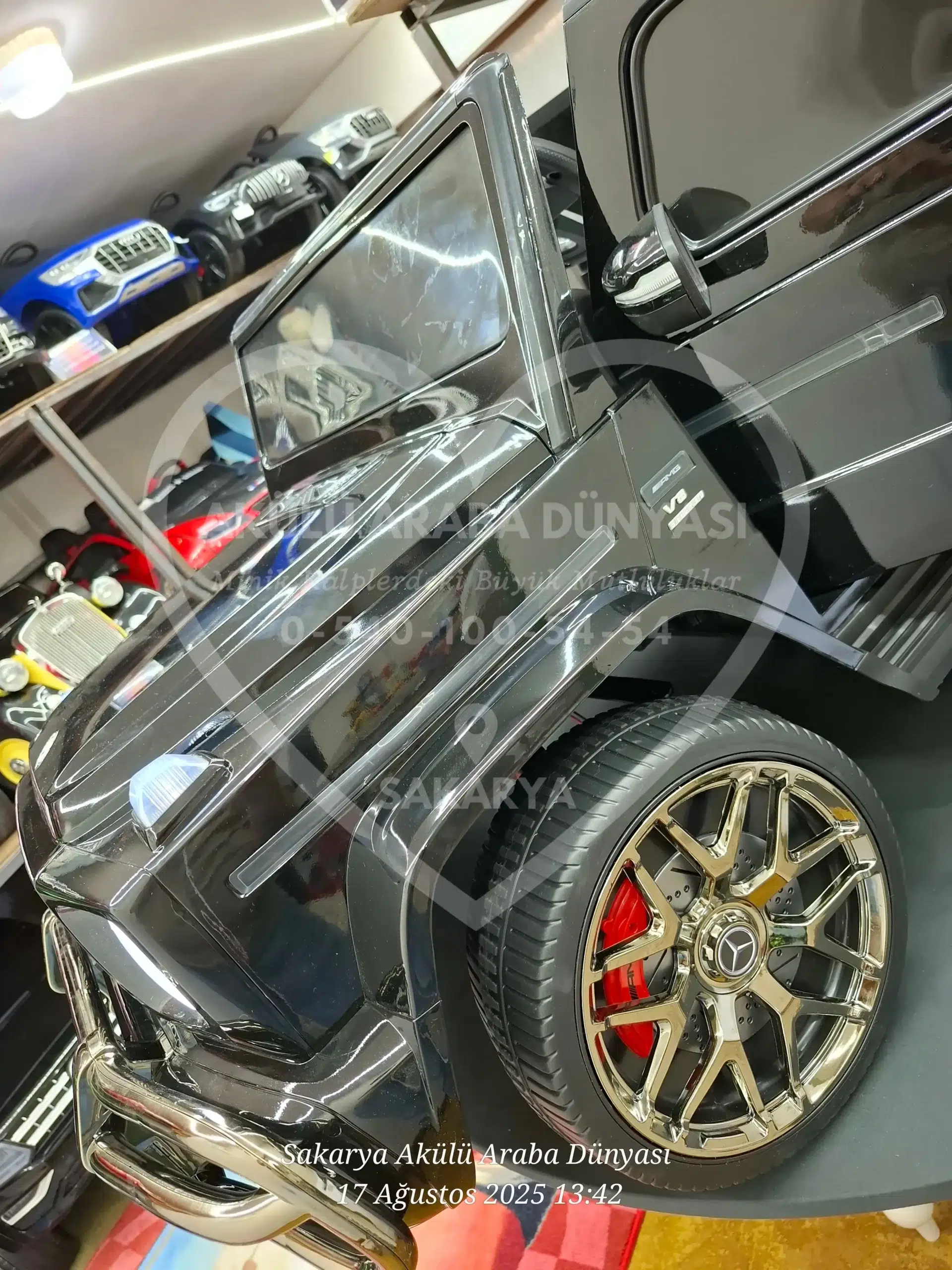 Lisanslı Mercedes-Benz G63 AMG 24V, gerçek 24 Volt gücü ve Quattro 4×4 çekişiyle rakiplerine meydan okuyor! Göz alıcı Metalik Siyah boyası, çift deri koltuk konforu ve akıllı telefon kontrollü multimedya sistemiyle Sakarya Akülü Araba Dünyası’nın en prestijli “Dev” modeli şimdi satışta. Tablet ekran opsiyonu ile birlikte 🙂