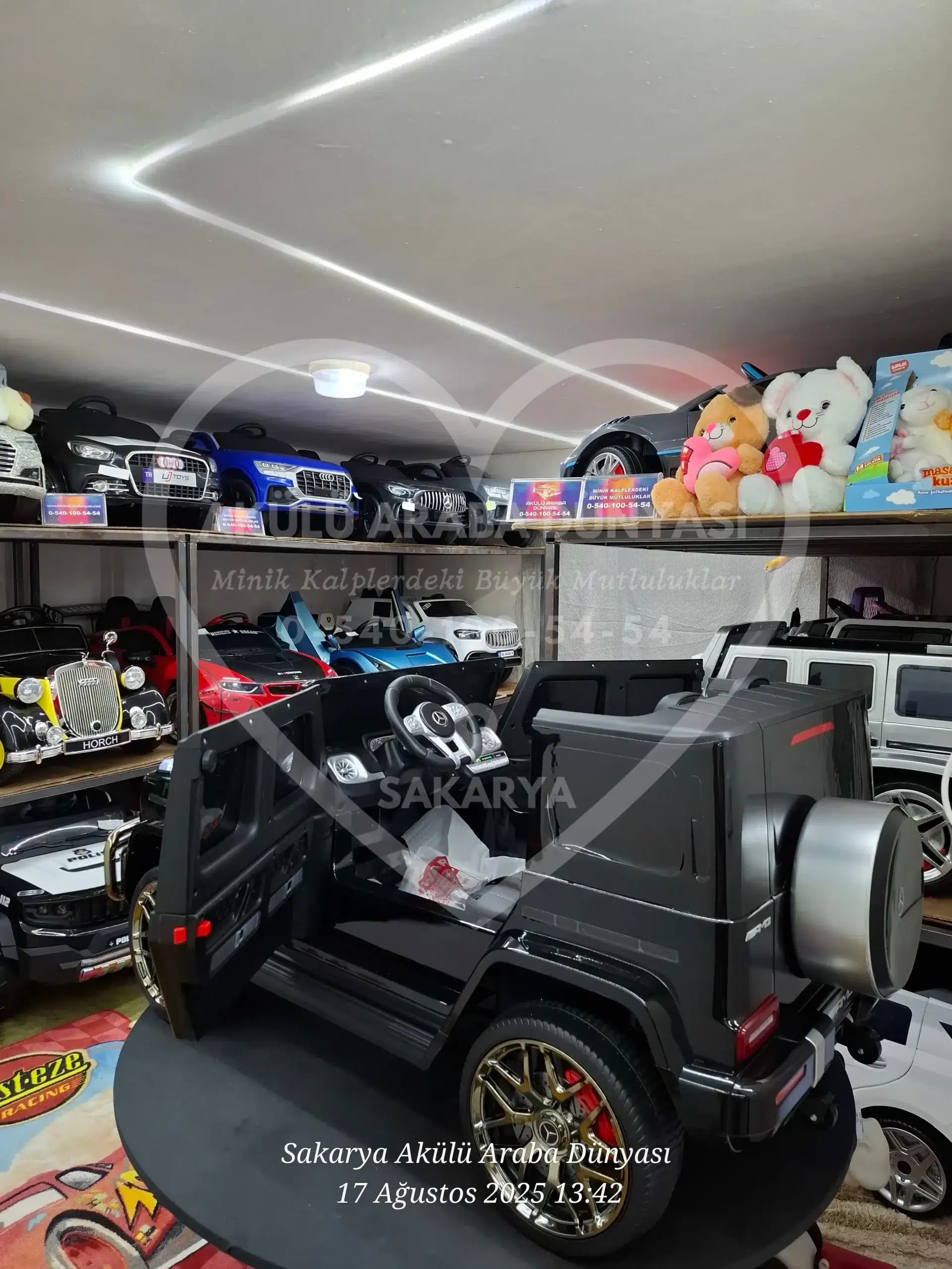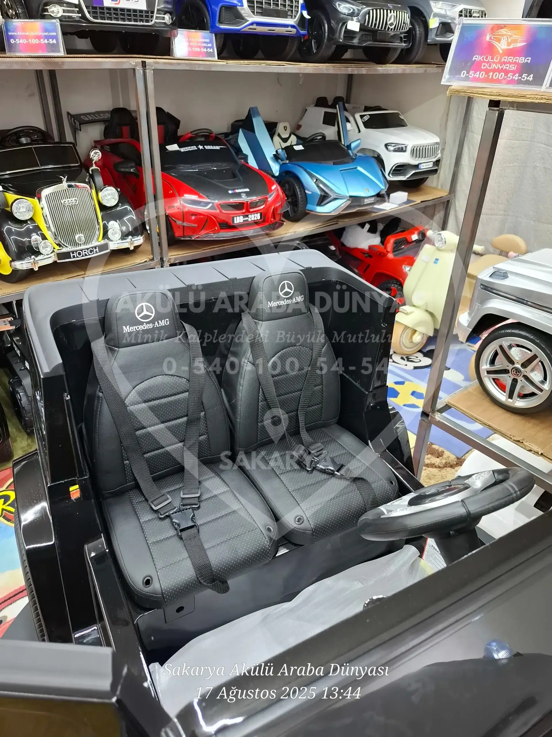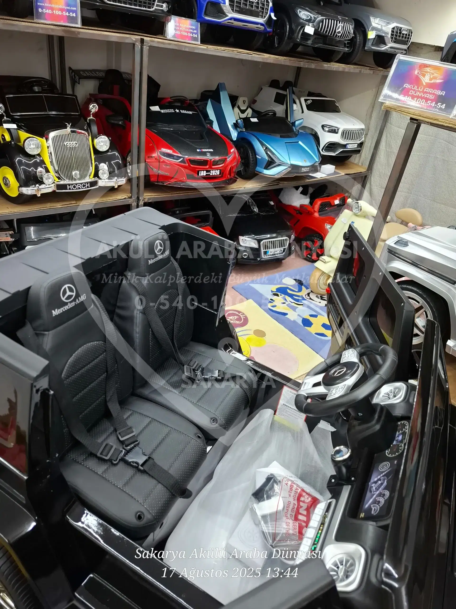 Lisanslı Mercedes-Benz G63 AMG 24V, gerçek 24 Volt gücü ve Quattro 4×4 çekişiyle rakiplerine meydan okuyor! Göz alıcı Metalik Siyah boyası, çift deri koltuk konforu ve akıllı telefon kontrollü multimedya sistemiyle Sakarya Akülü Araba Dünyası’nın en prestijli “Dev” modeli şimdi satışta. Tablet ekran opsiyonu ile birlikte 🙂