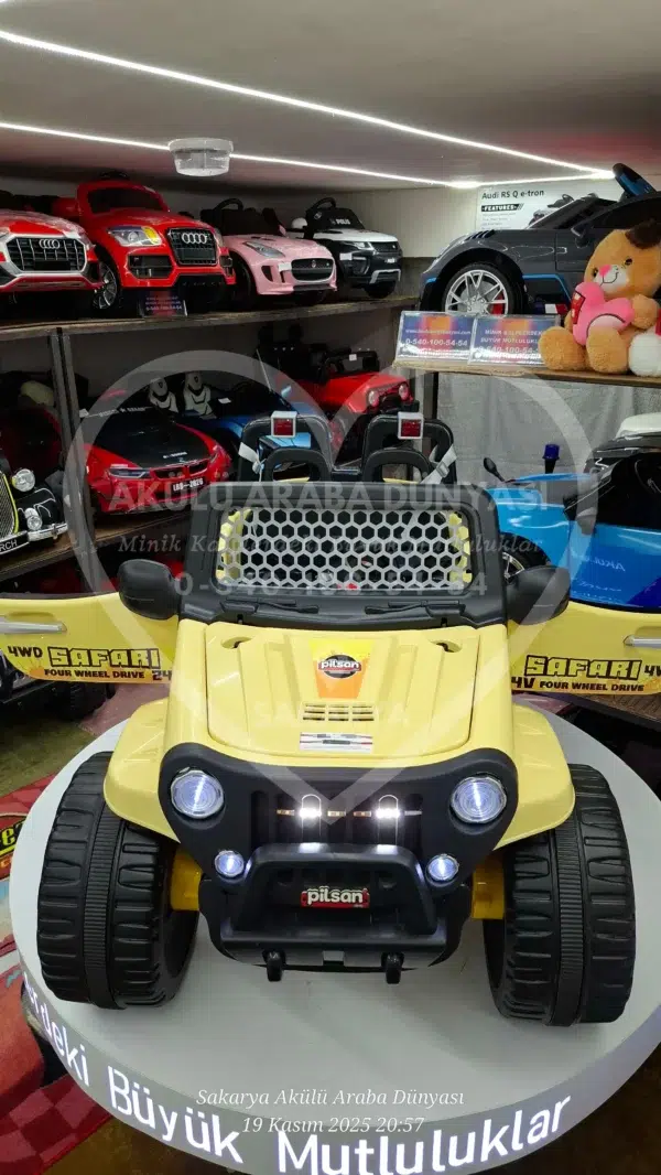 Pilsan Safari 24V 4×4 Dev Boy Akülü Araba’yı Sakarya Akülü Araba Dünyası mağazamızda yakından inceleyebilir; montajı tamamlanmış ve kullanıma hazır şekilde hemen teslim alabilirsiniz. Pilsan kalitesi ve showroomumuzun servis güvencesiyle çocuklarınıza en büyük hediyeyi verin!
