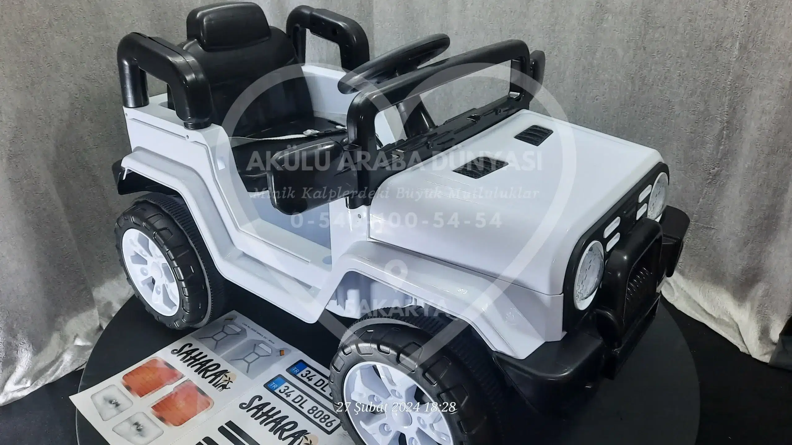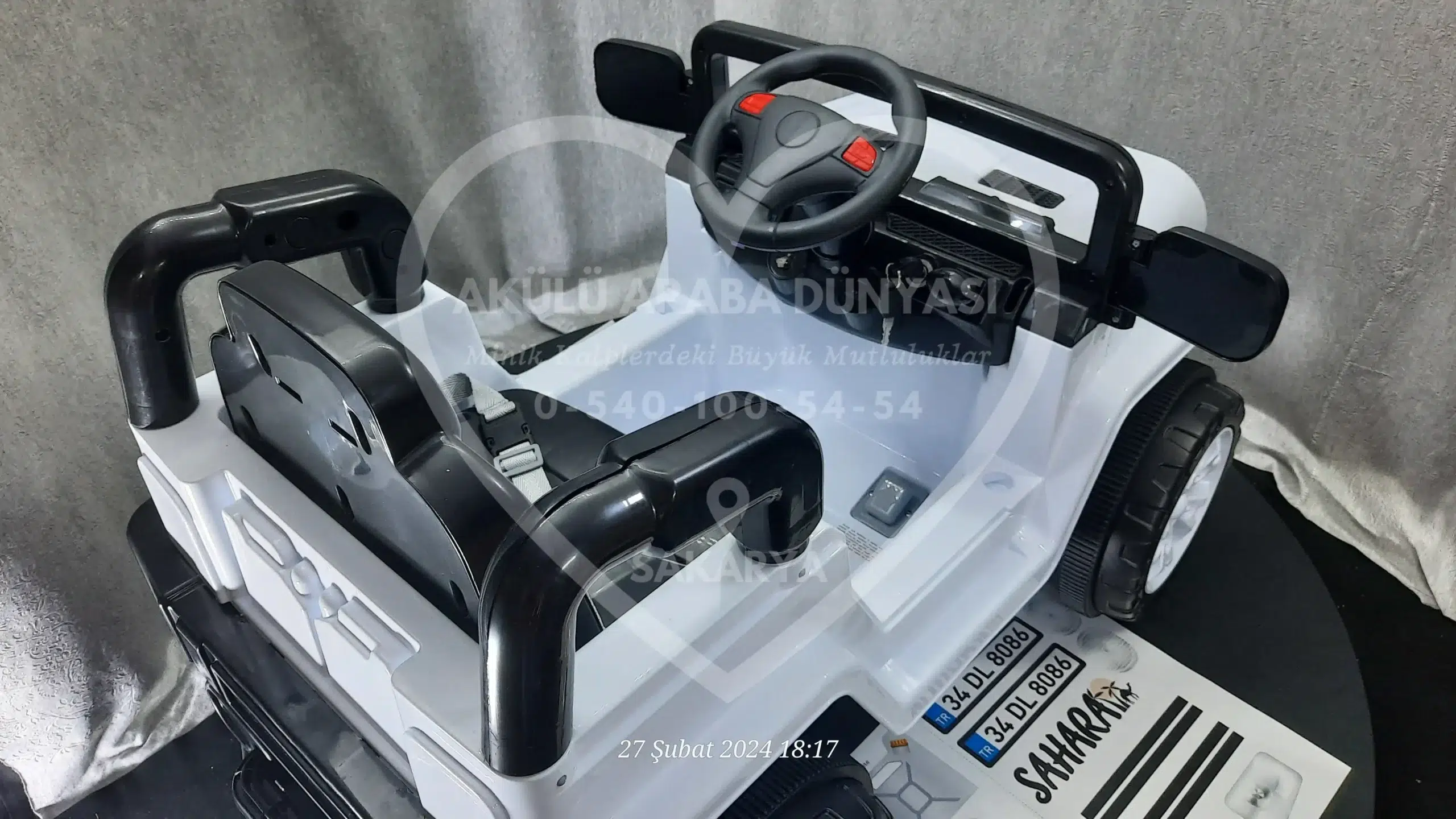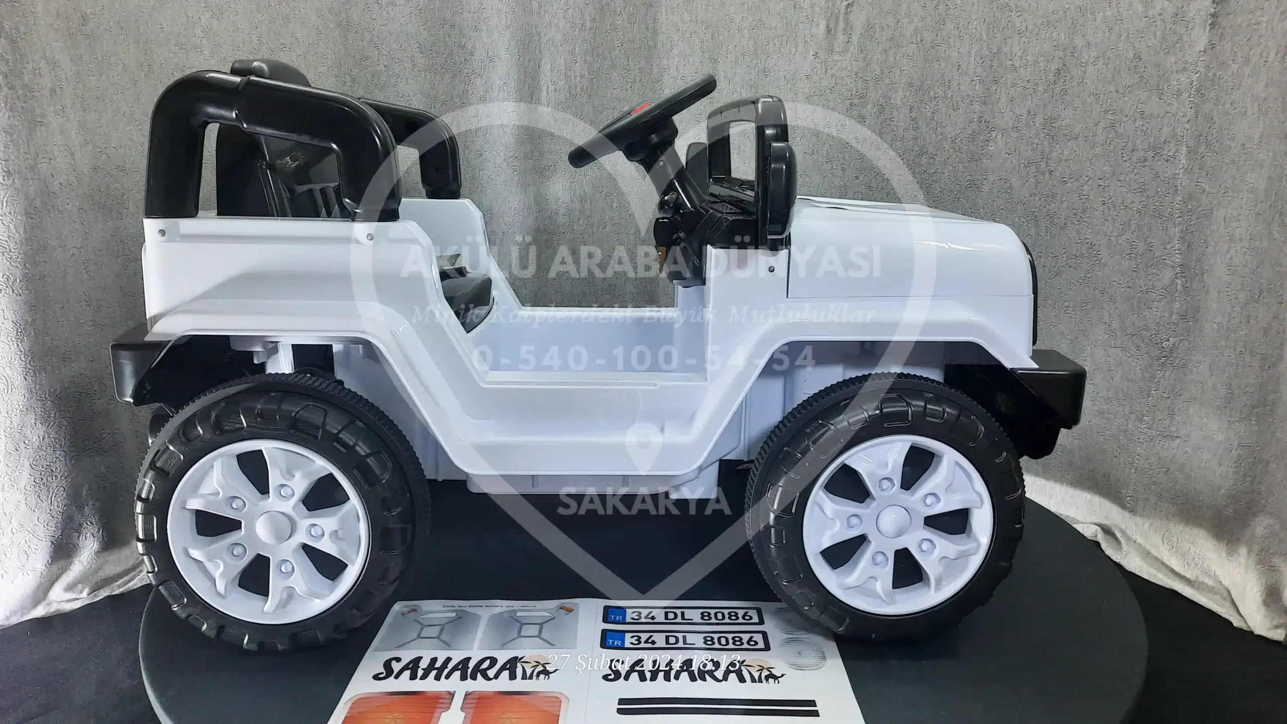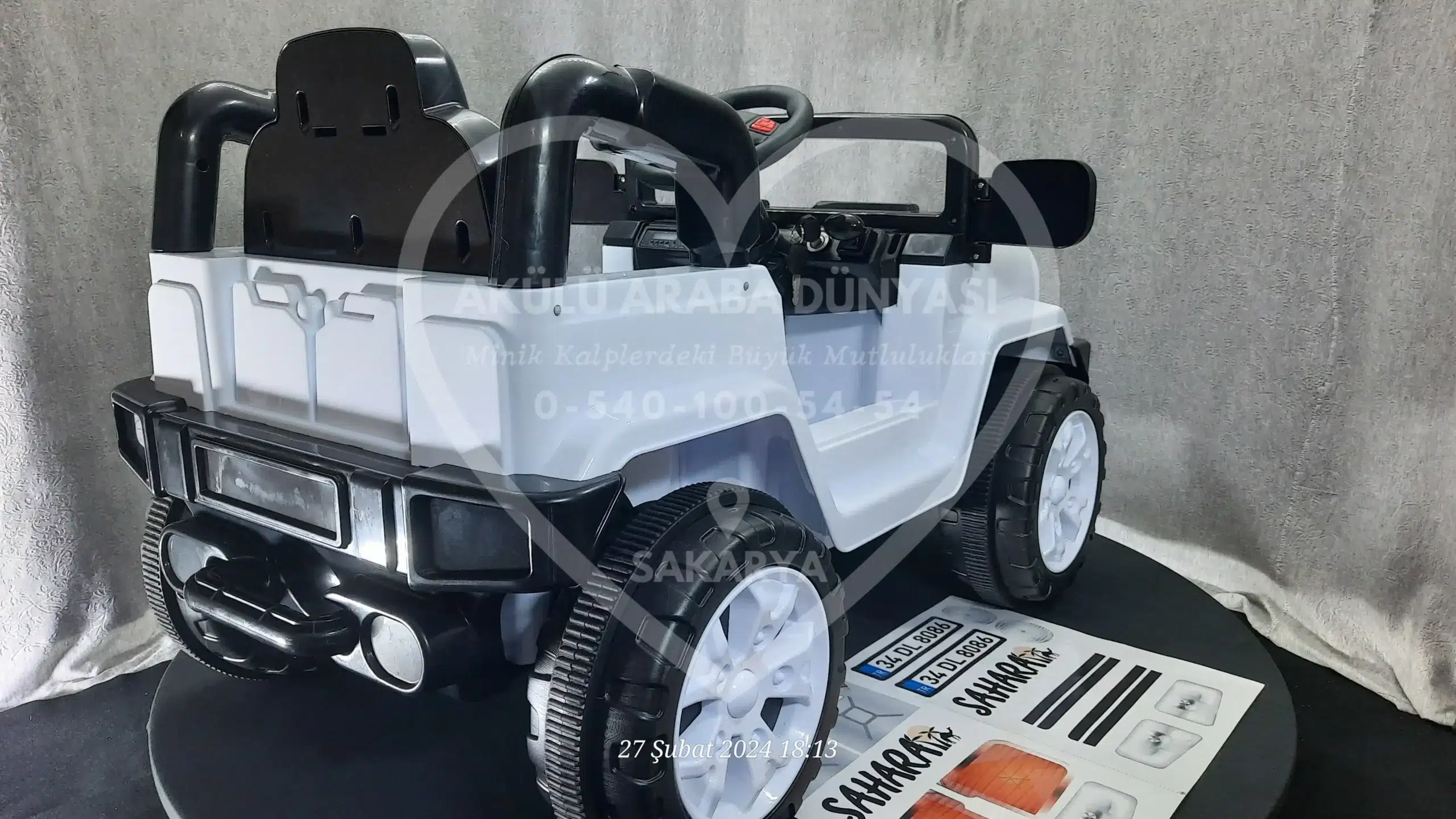 ‘Akülü Araba Dünyası’ olarak, Sahara 12V Beyaz modelini Sakarya’daki mağazamızda; montajı tamamlanmış, akü kontrolleri yapılmış ve kullanıma hazır şekilde sunuyoruz.