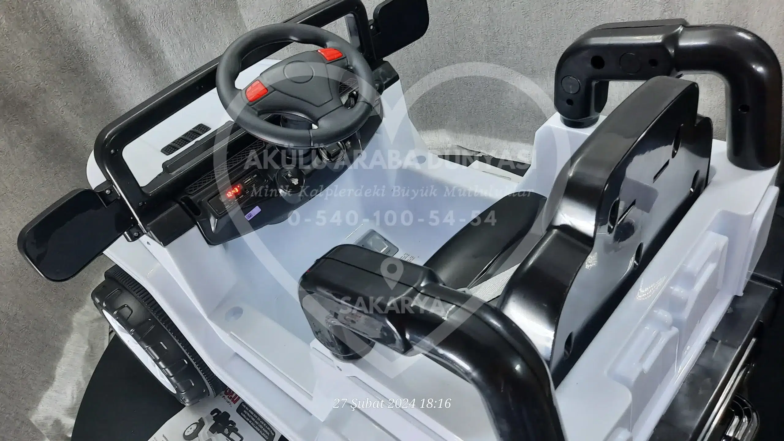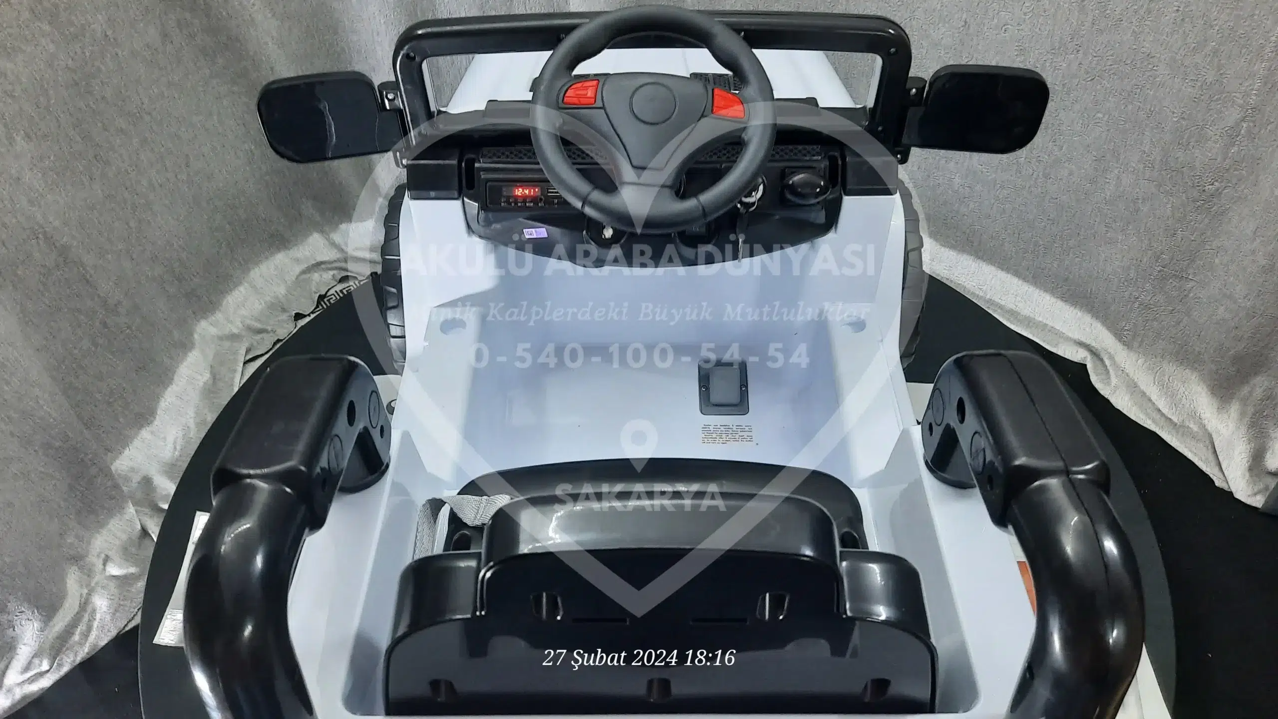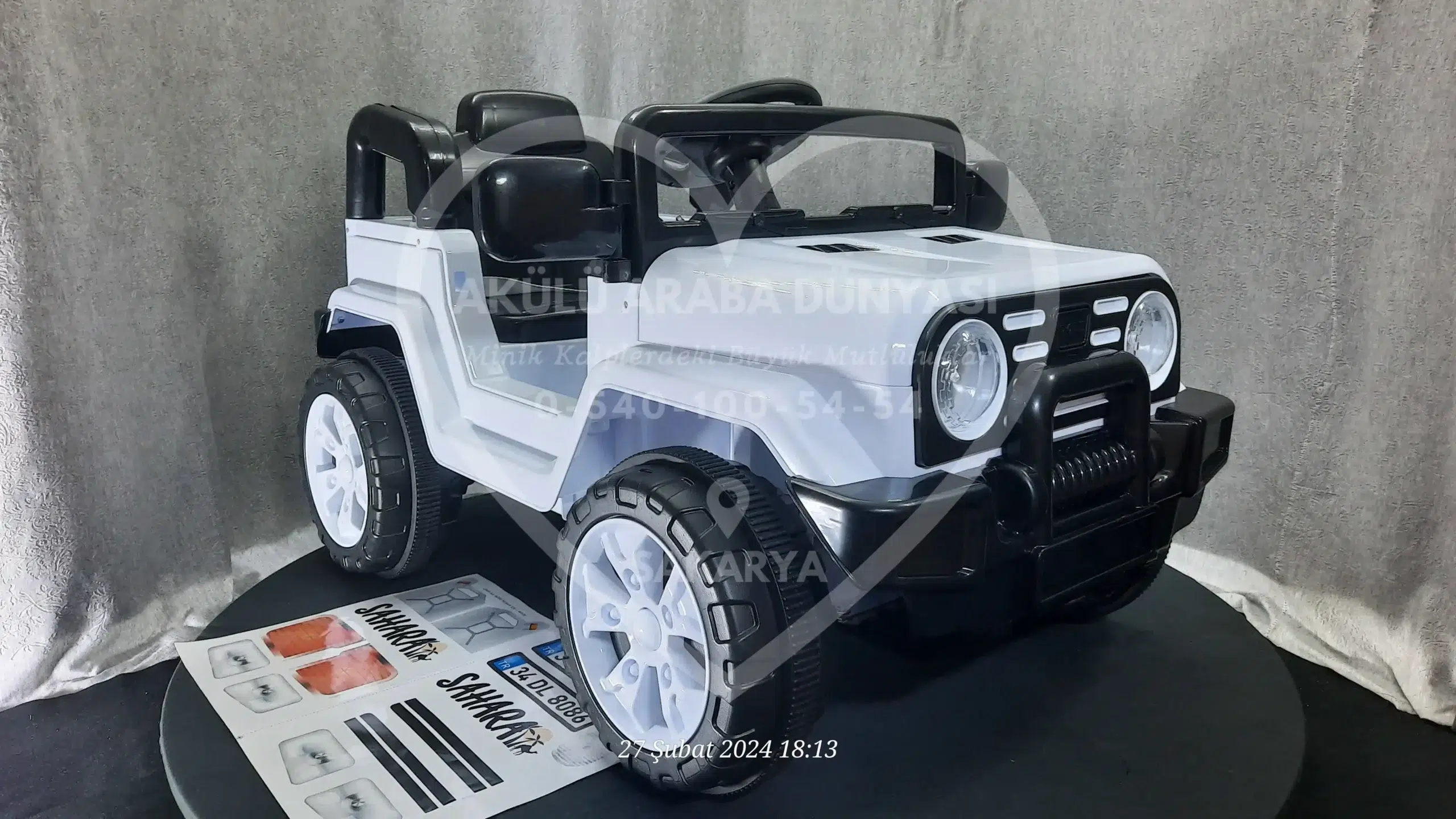 ‘Akülü Araba Dünyası’ olarak, Sahara 12V Beyaz modelini Sakarya’daki mağazamızda; montajı tamamlanmış, akü kontrolleri yapılmış ve kullanıma hazır şekilde sunuyoruz.