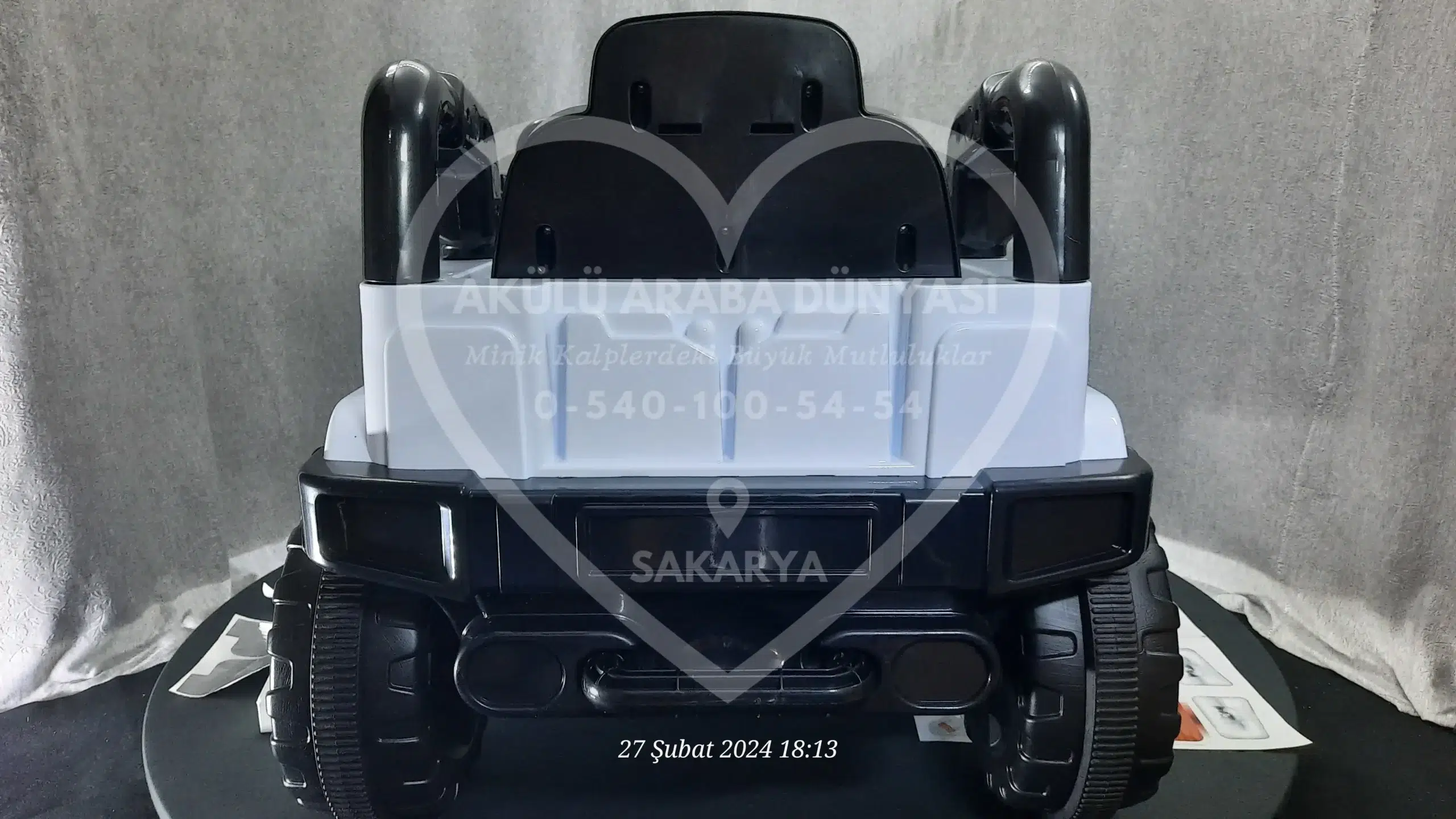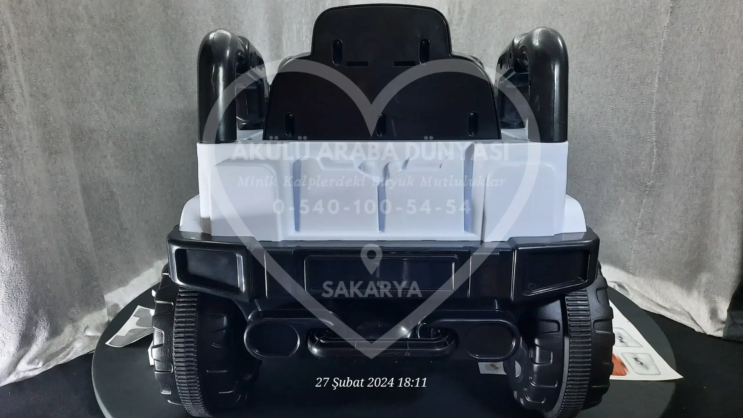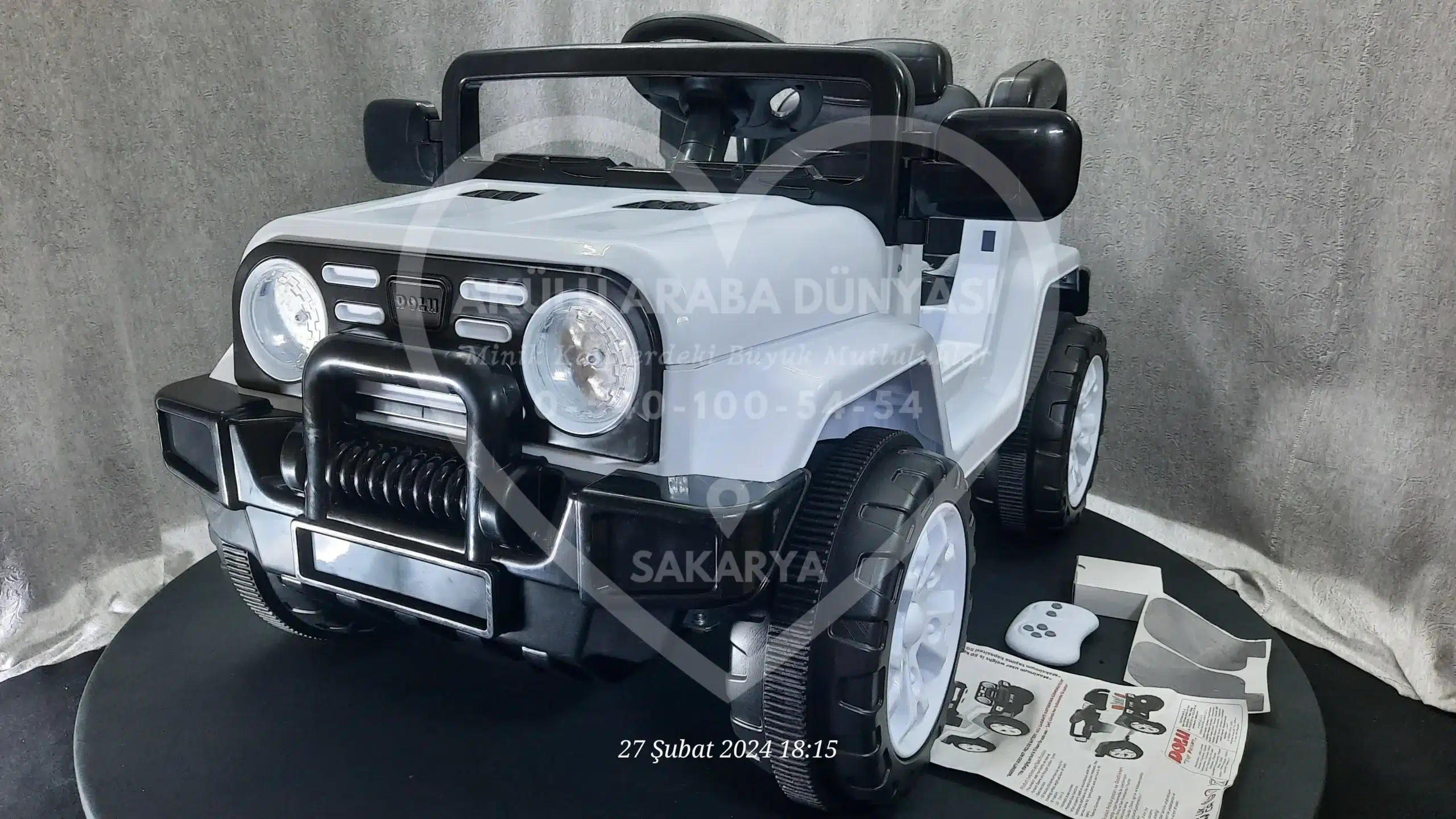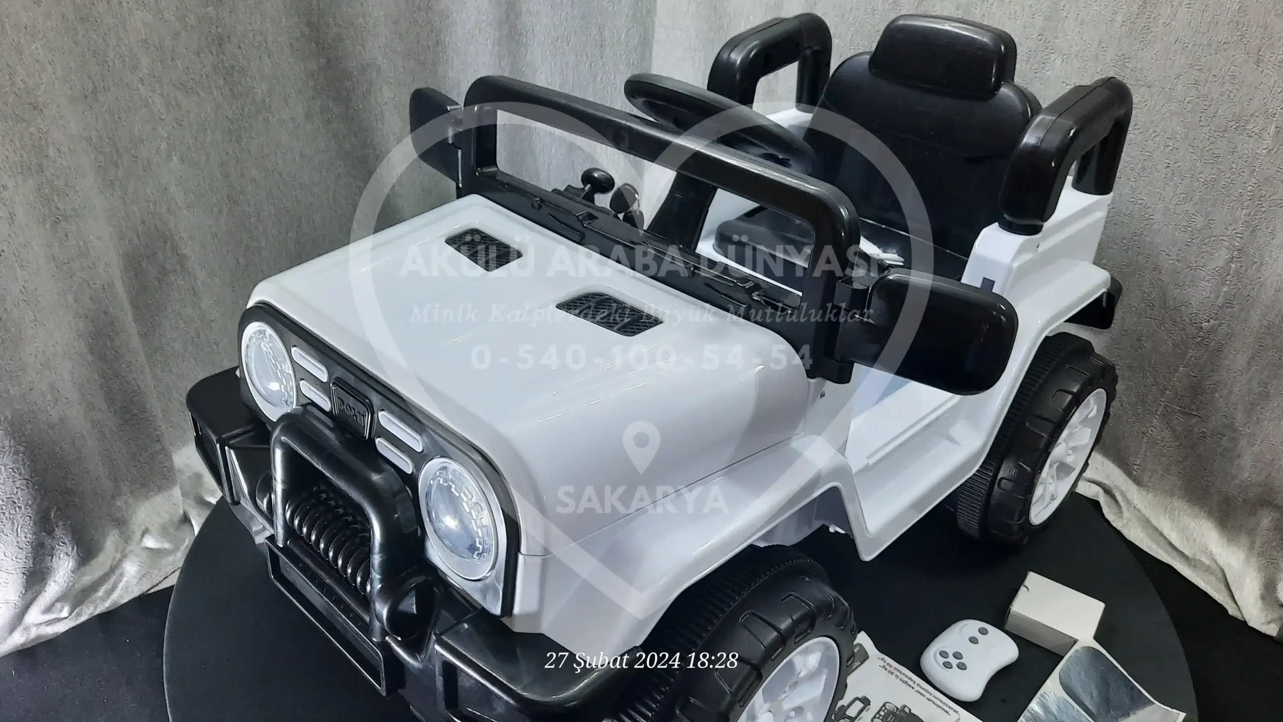 ‘Akülü Araba Dünyası’ olarak, Sahara 12V Beyaz modelini Sakarya’daki mağazamızda; montajı tamamlanmış, akü kontrolleri yapılmış ve kullanıma hazır şekilde sunuyoruz.